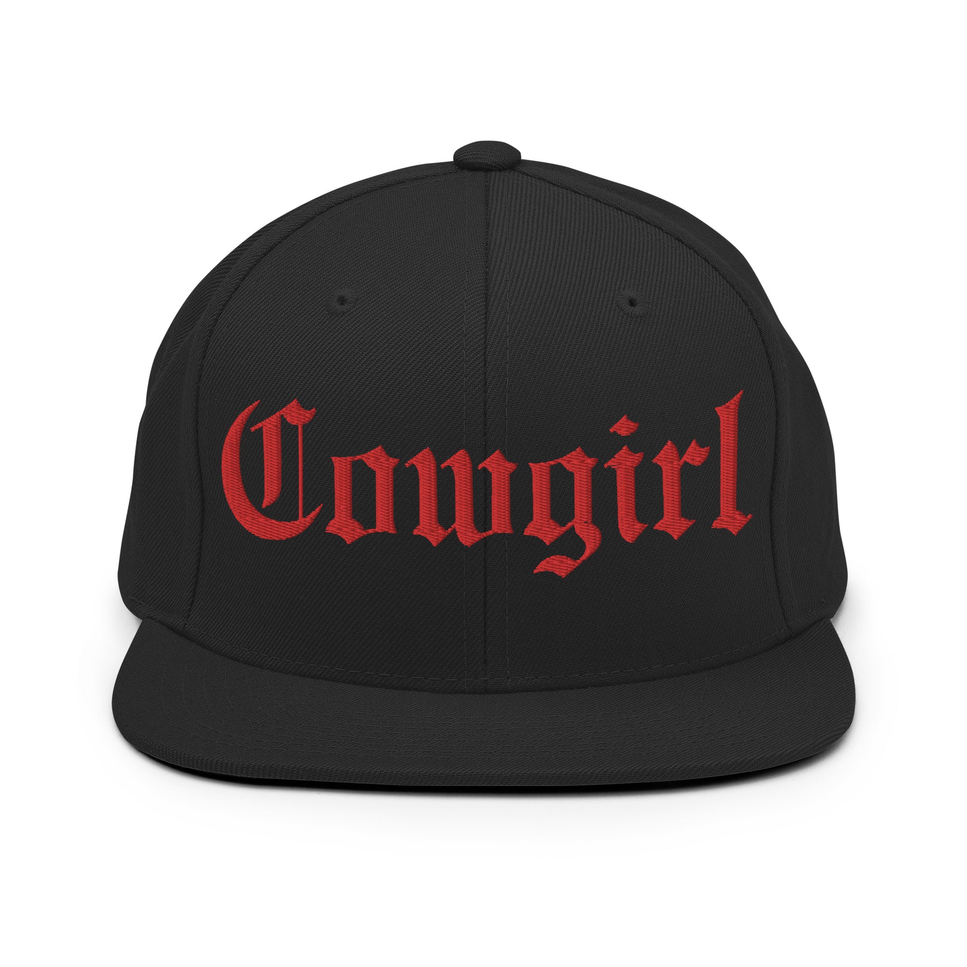 Cowgirl Embroidered Snapback Hat Gothic Old English Font Flat Bill Cap