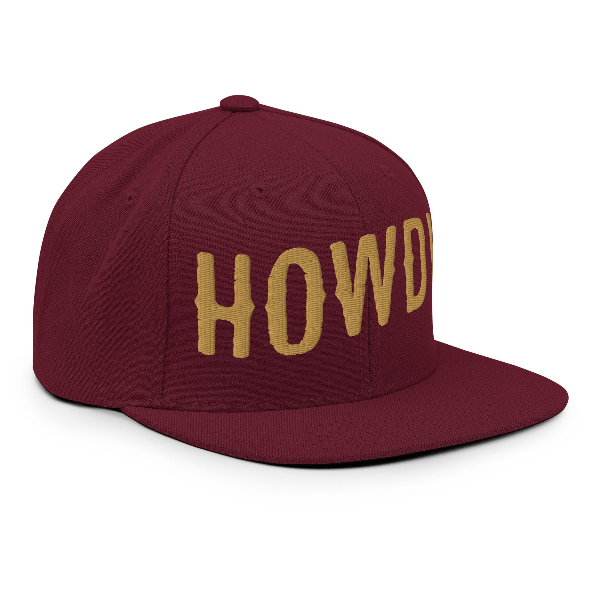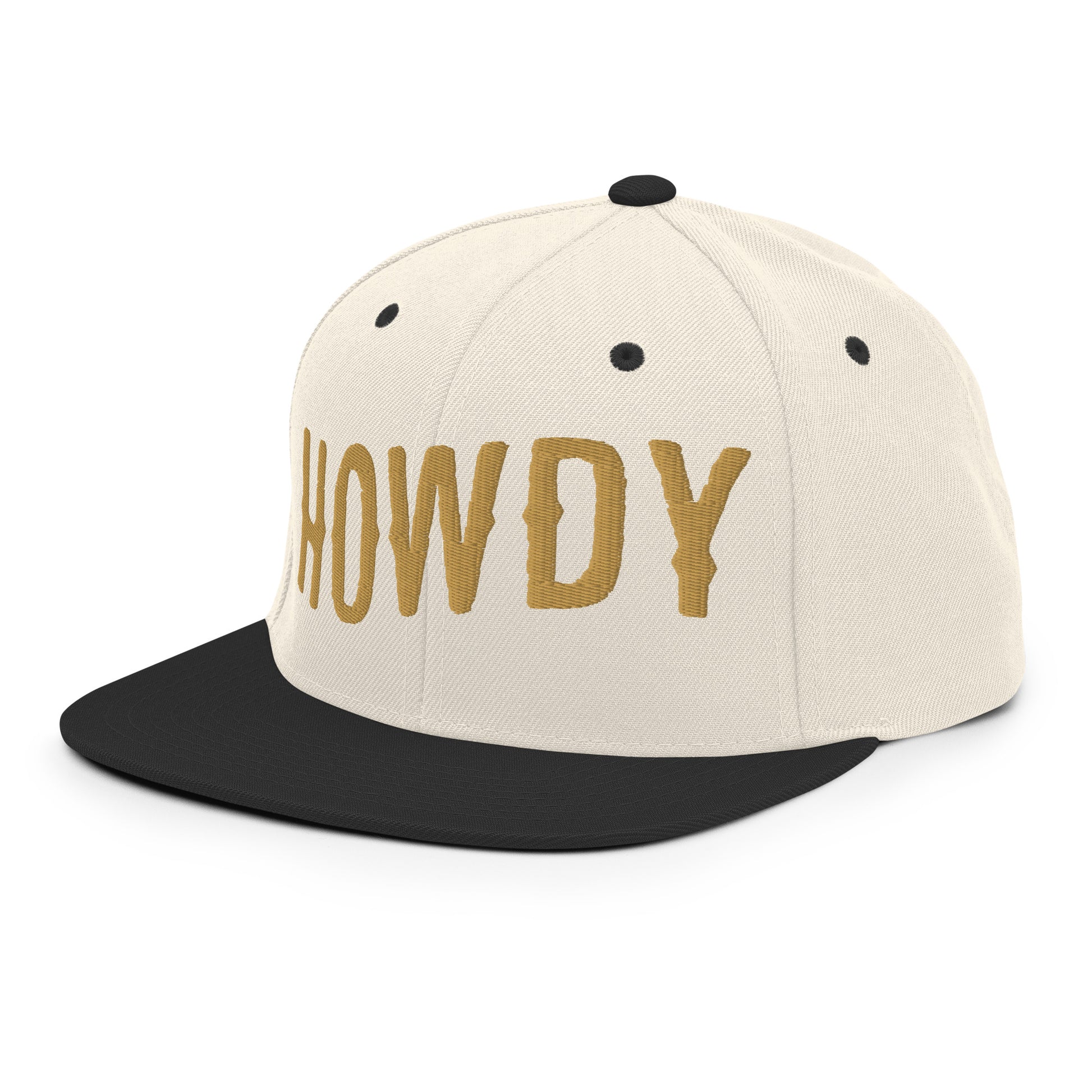 Howdy Embroidered Snapback Hat | Old Gold Thread