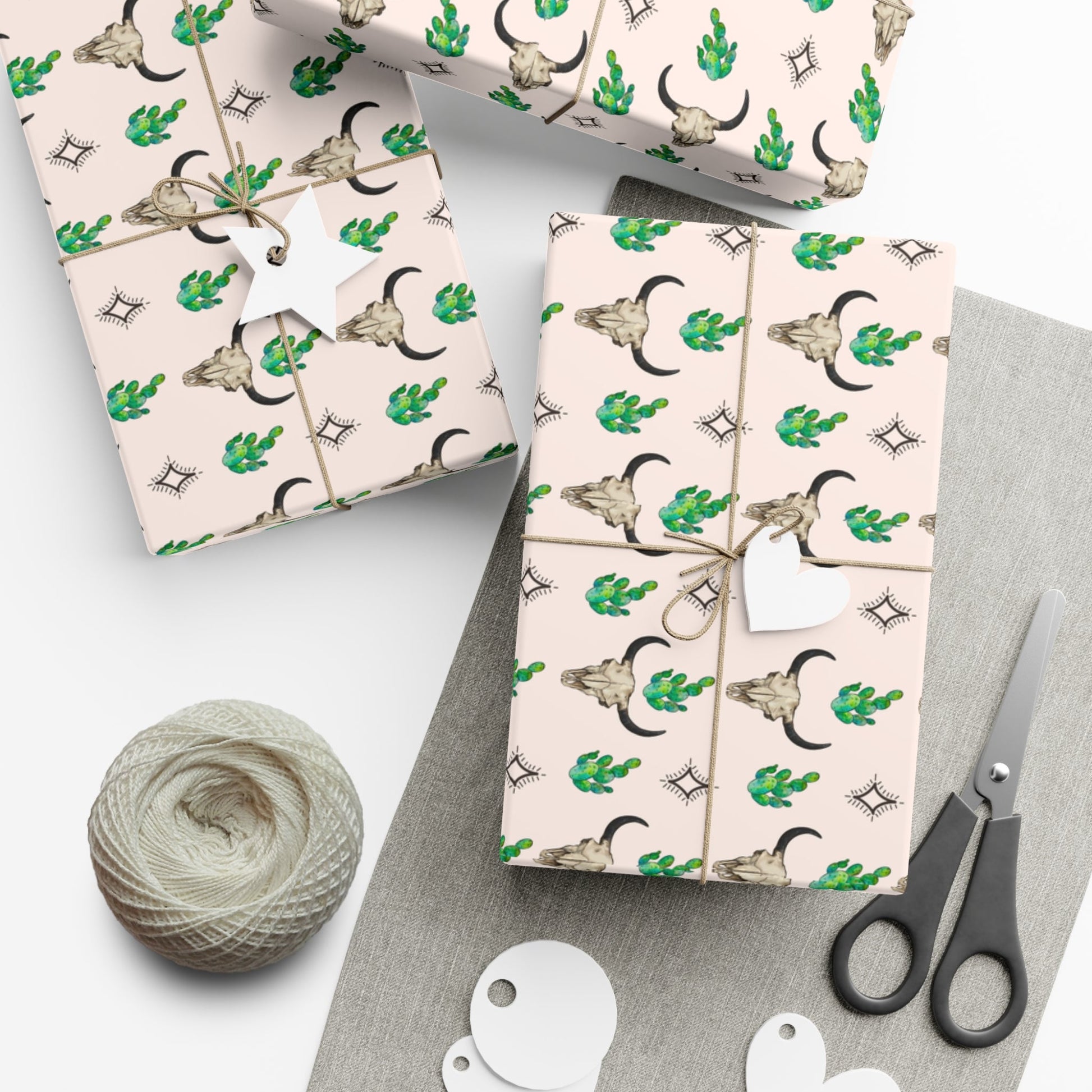 Western Steer Skull and Cactus Gift Wrap Paper
